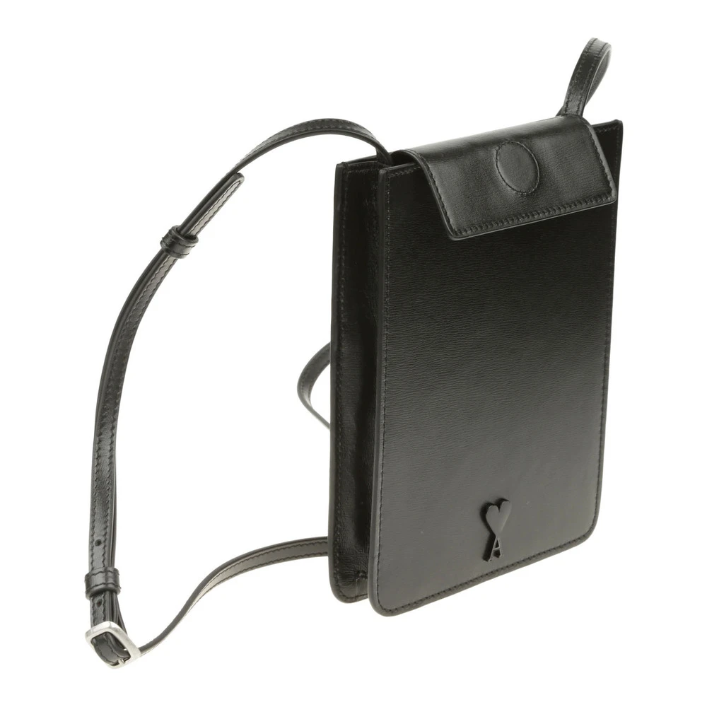 Ami svart skinn skulderstropp, klipp lukking, logodetaljer.