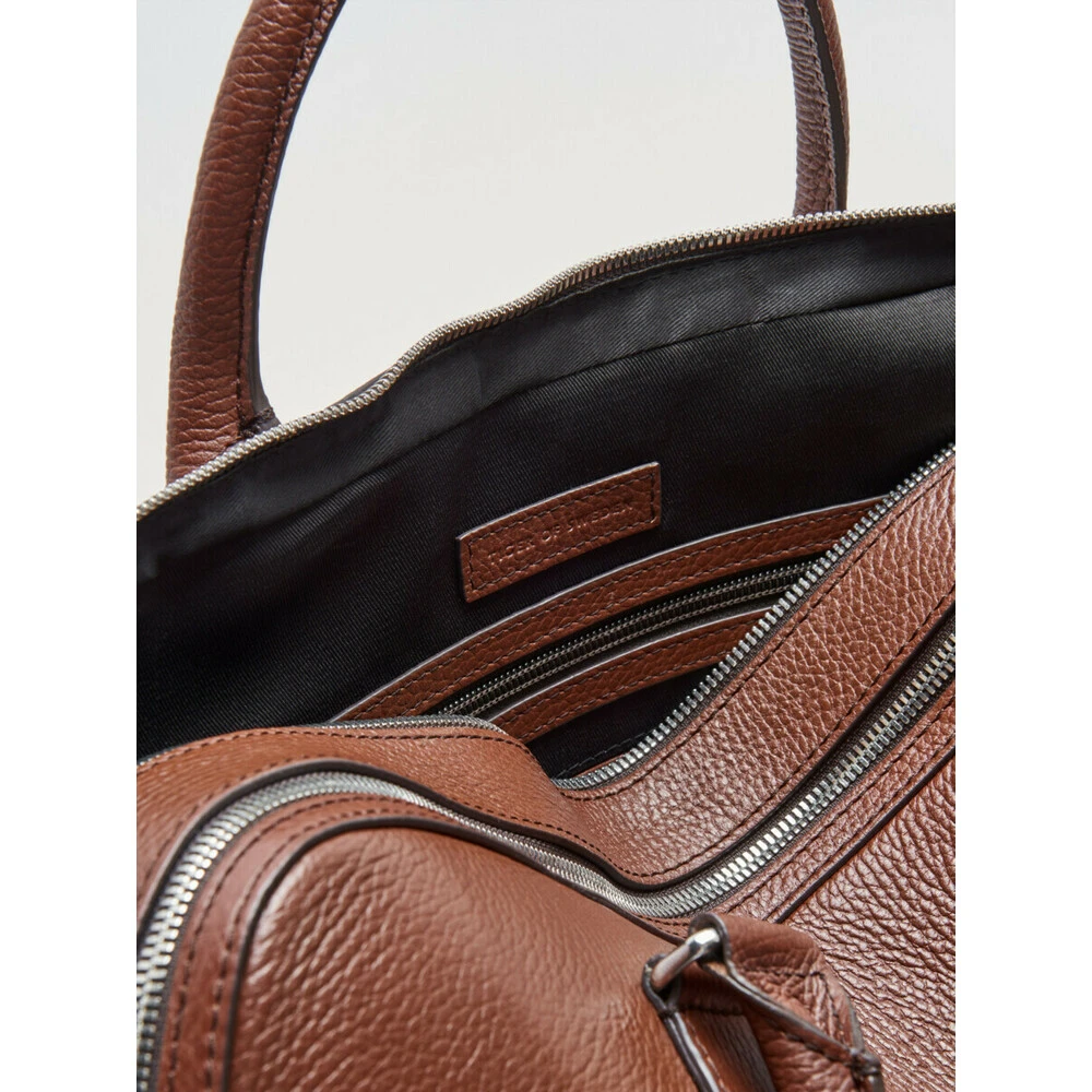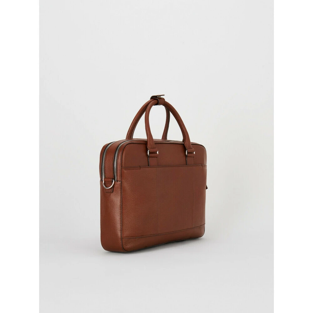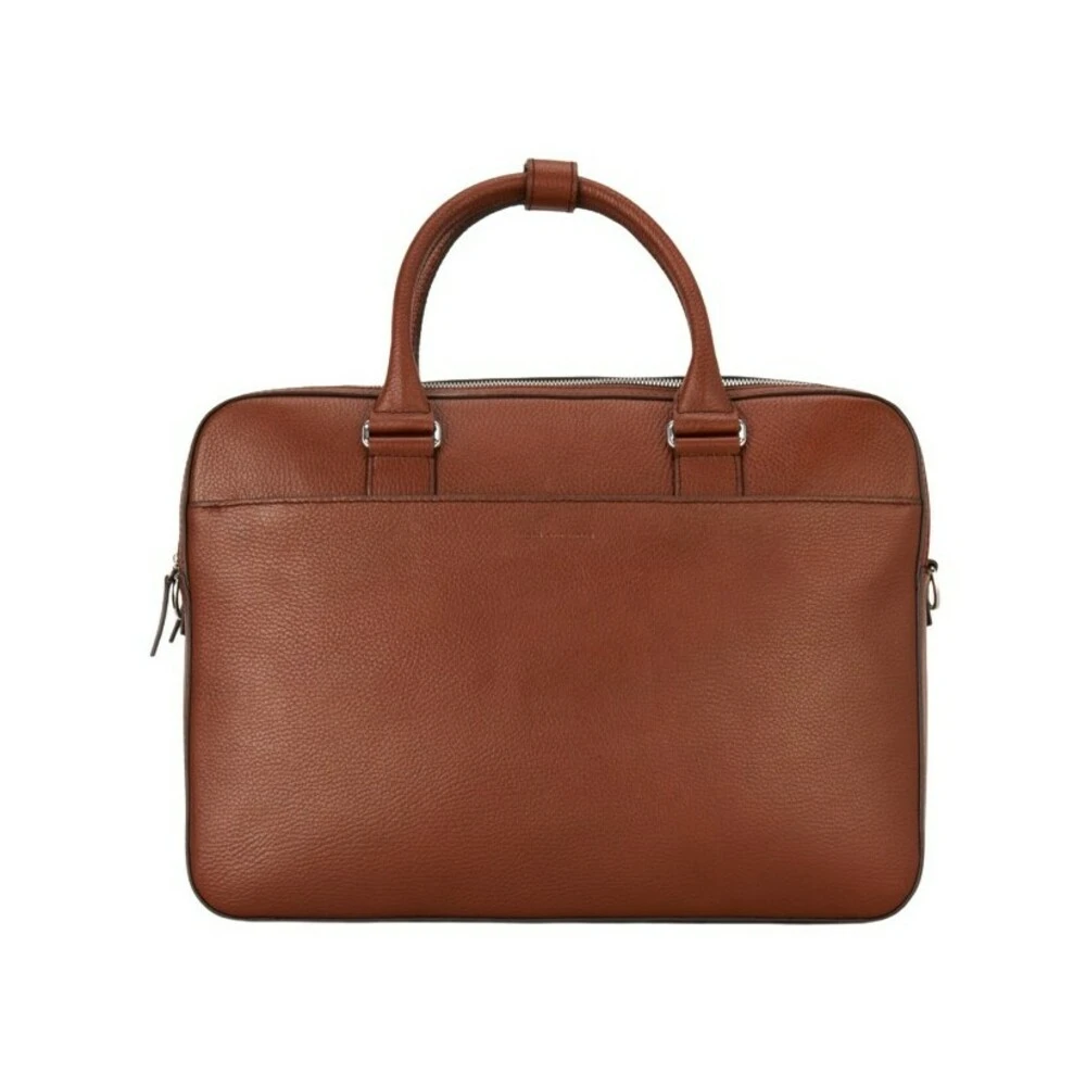 Burin Briefcase fra Tiger of Sweden. Håndbag med to korte håndtak og medfølgende skulderstropp, her i sort. Bagen har to adskilte hovedrom med glidelås. Innvendig glidelåslomme, to åpne lommer, samt muligheter for oppbevaring av penner og kort. Baksiden har en lomme med glidelås i bunn som kan åpnes og bagen kan tres på de fleste trillekofferter. Tiger of Sweden Burin Briefcase Cognac 100% Kalveskinn H 29cm B 40cm D 7,5cm Passer laptop på inntil 15 tommer Kan med fordel behandles med impregnering Ingen vask eller rens (fjern flekker med tørr klut) Artikkelnummer U69380 12S