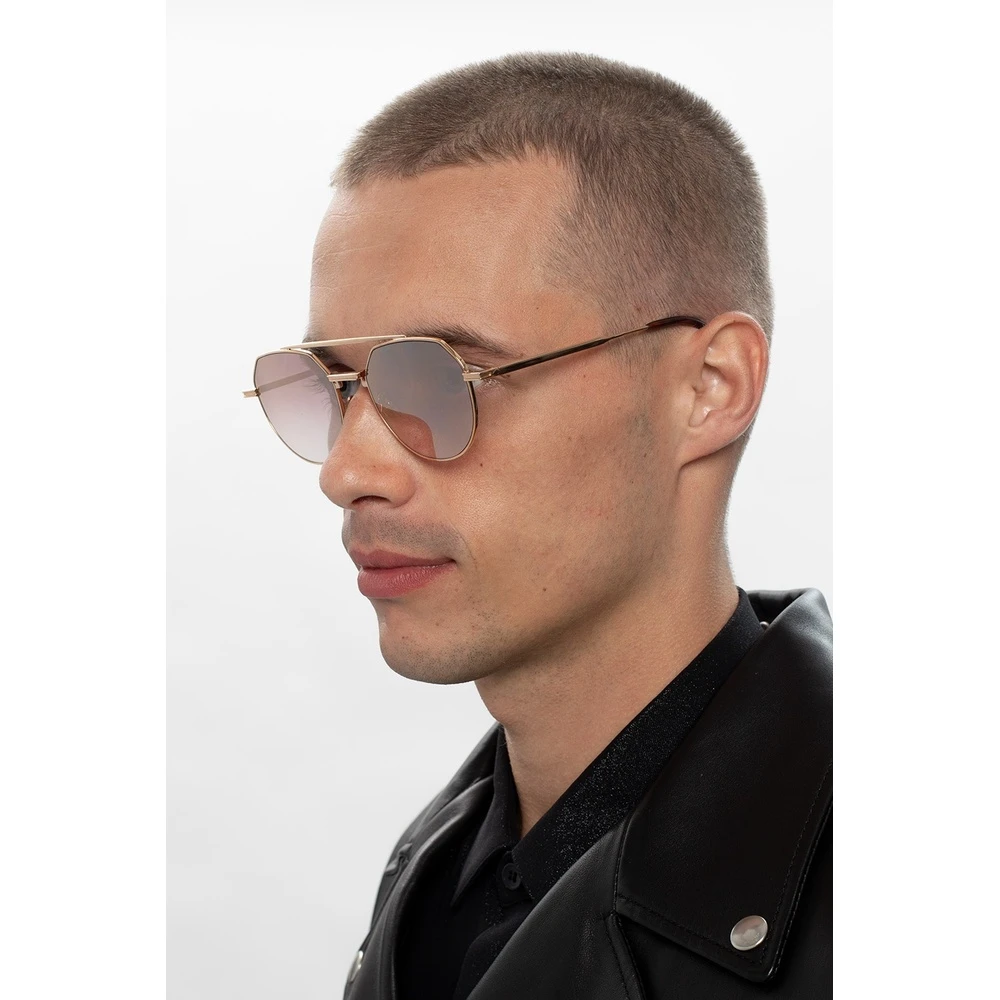 Pink ‘James’ solbriller fra John Dalia. Dette 80 -talls inspirerte paret er laget av metall og acetat, og har blitt belagt med 22 karat gull. Den har også designerens logo og modellnavn trykt på innsiden av templene, en dobbel bro og sertifiserte rosa linser med UVA/UVB -beskyttelse. Beskyttelsessak inkludert.