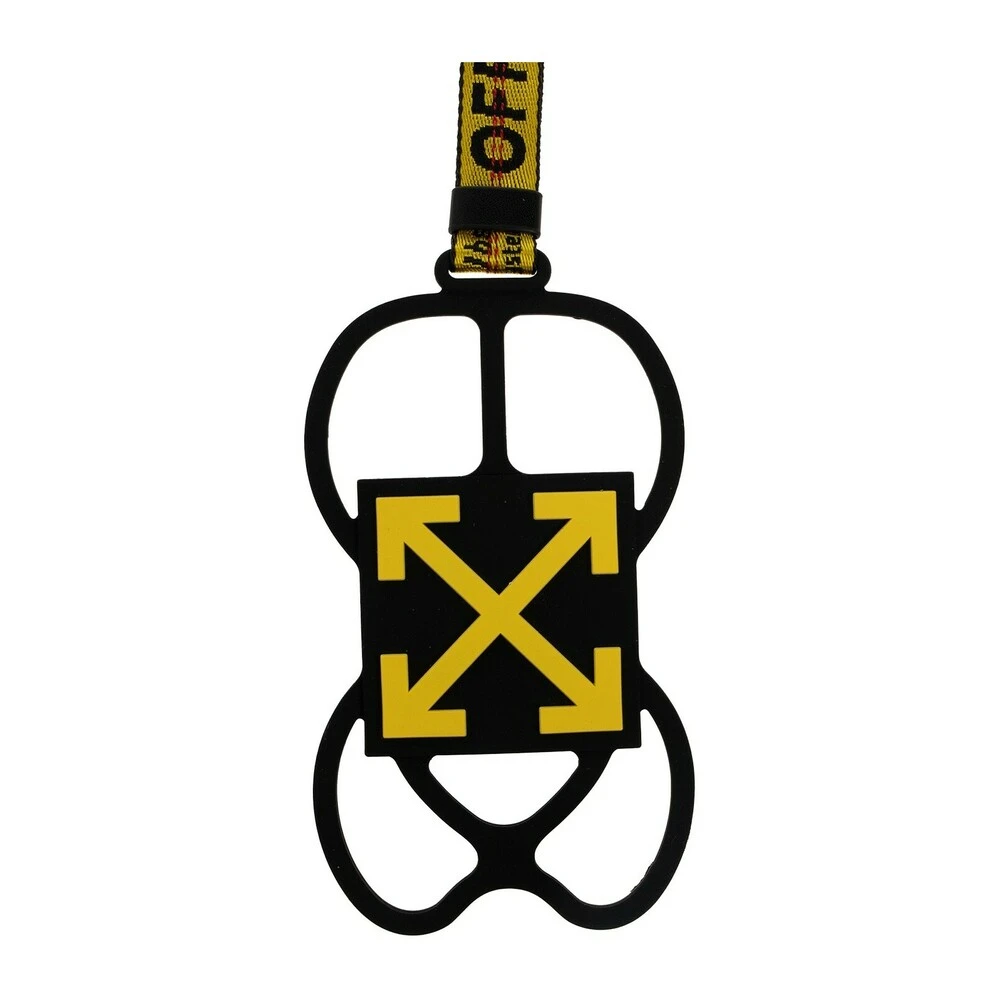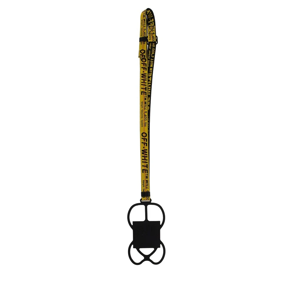 Svart strekk telefonpose fra off-white. Denne varen er dekorert med merkets signaturgule piler bak, og har en justerbar stropp brodert med et svart logo -mønster og rød søm.