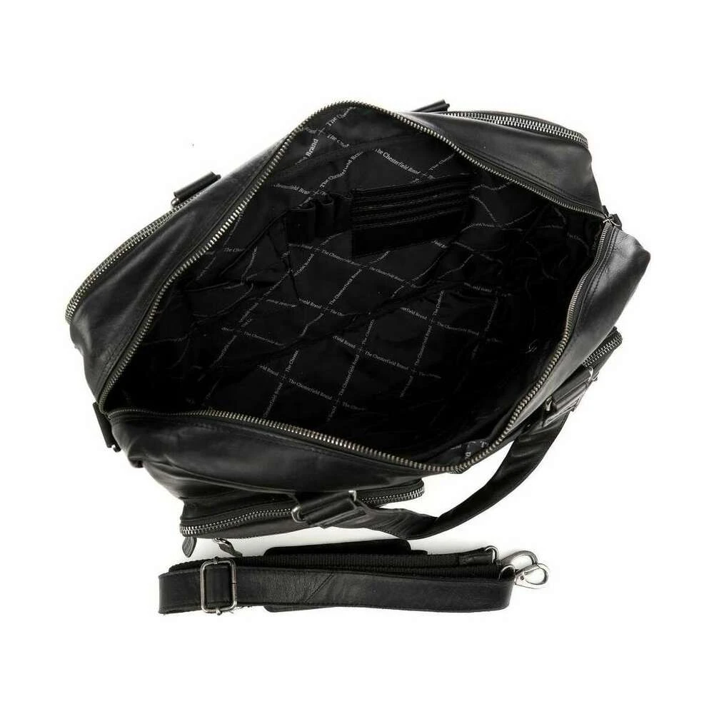 Beskrivelse The Chesterfield Brand Misha svart 17 pc skinnveske. Pc vesken i skinn er produsert i en skinnkvalitet som heter Wax-Pullop. Det som er karakteristisk for denne flotte skinnkvaliteten er den myke følelsen og at den gir en litt dyp tofarget fargeeffekt. Den spesielle voksbehandlingen gjør det enkelt å vedlikeholde pc vesken. Det er bare og tørke over vesken med en myk tørr klut, så vil den spesielle voksbehandlingen gjøre at læret får tilbake sitt opprinnelige utseende. Skinnvesken har eget polstret rom for 17 pc. I det store hovedrommet en åpen lomme, en glidelåslomme pluss organiser for penner etc. Utvendig på fronten er det to utvendige lommer med glidelås. På baksiden av pc vesken er det en glidelåslomme og en smart rem til å feste skinnvesken over håndtaket på en koffert. Vesken har avtagbar skulderrem. PRODUKTFAKTA Skinnkvalitet: Cow Wax-Pullop Farge: Svart Størrelse: 43 x 31 x 16 cm Volum: 21,3 liter Maks Pc: 17 Vekt: 1,7 kg Lås: Glidelåslukking Avtagbar regulerbar skulderrem Garanti: 3 år