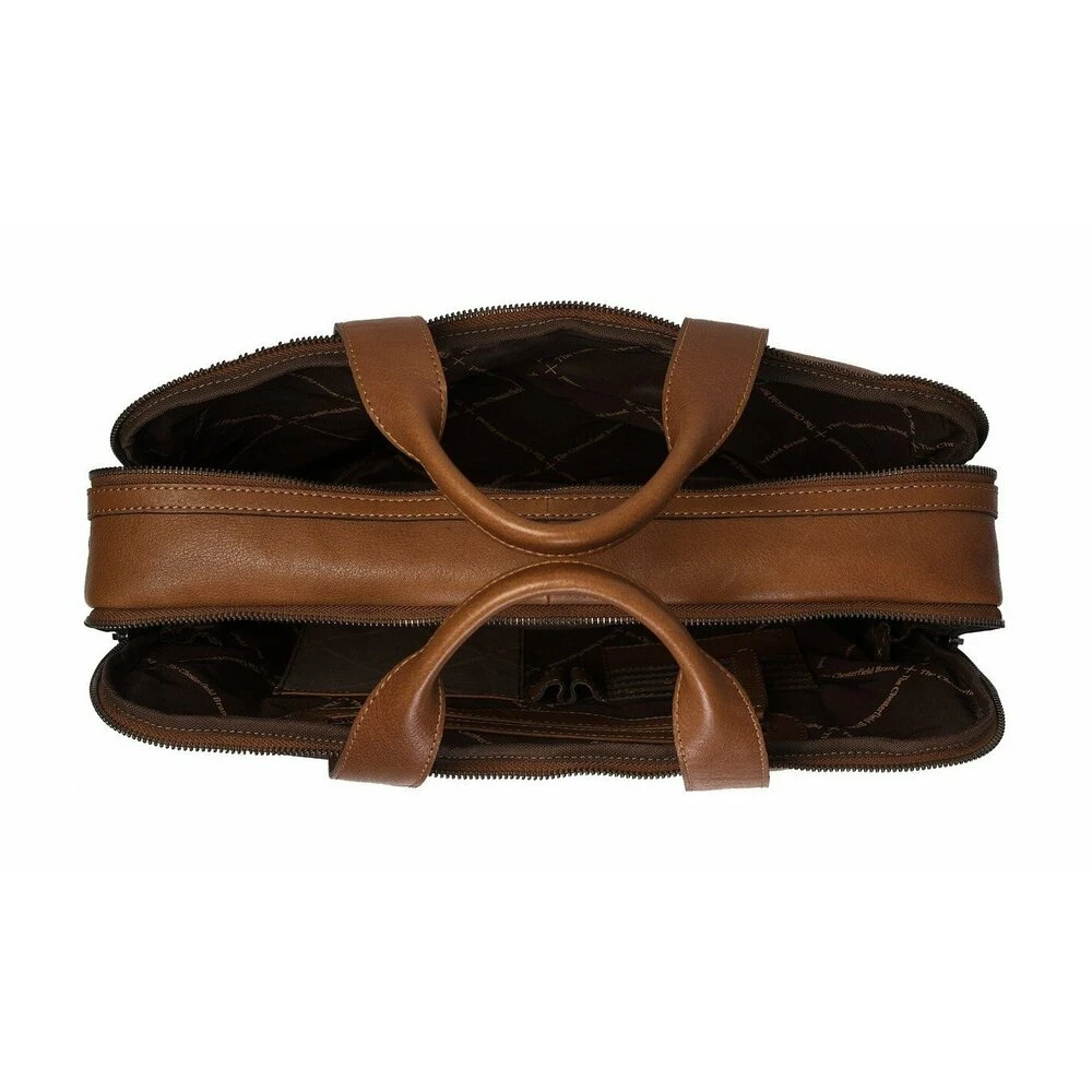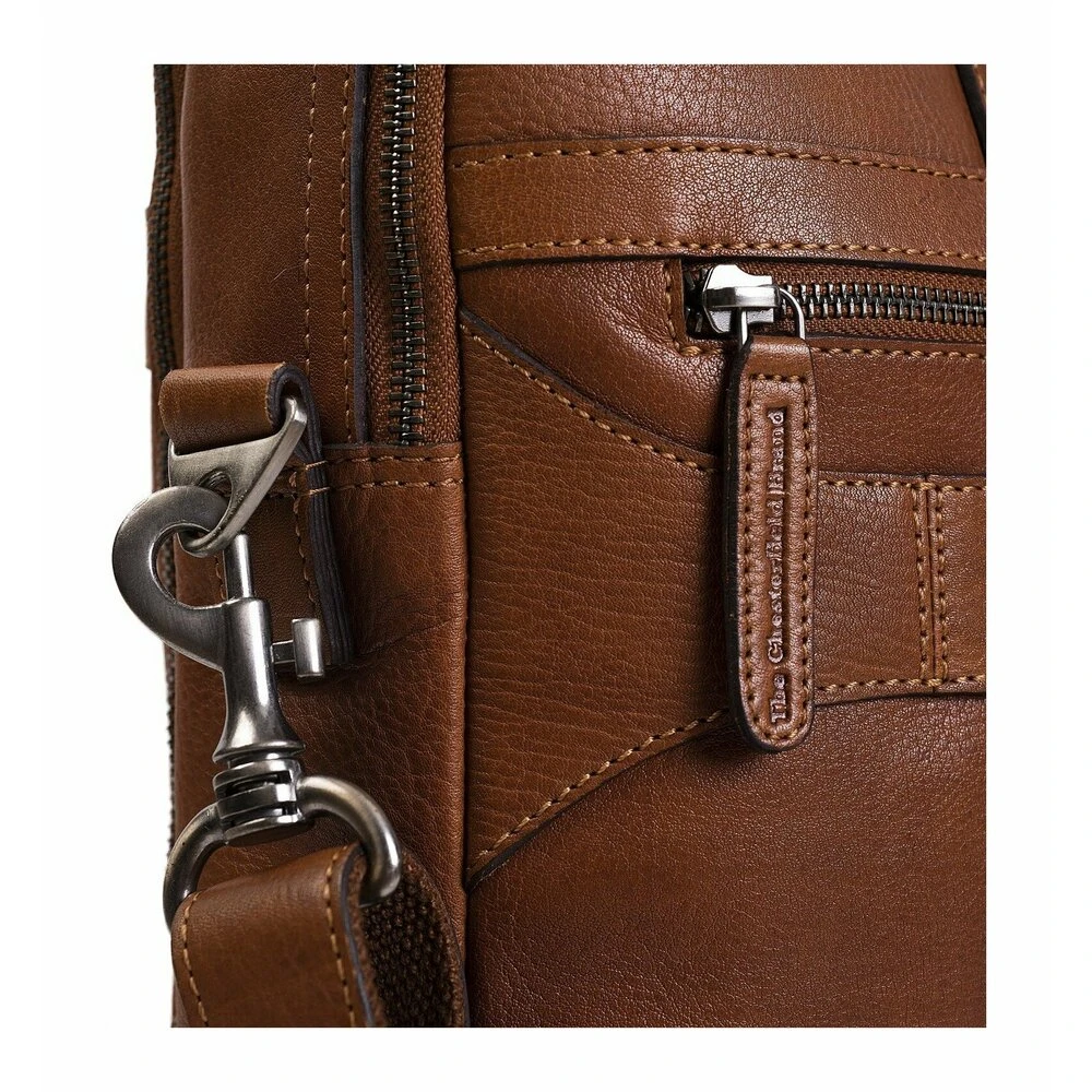Beskrivelse The Chesterfield Brand Duke Cognac farget 15,6 pc skinnveske. Pc vesken i skinn er produsert i en skinnkvalitet som heter Soft Class. Skinnet er farget på en spesiell måte som gir vesken et rent og klassisk utseende, samtidig som det er lett å holde rent og vedlikeholde. Vesken har to store rom. I det ene er det en polstret lomme for pc opp til 15,6 . Og i det andre er det plass for dokumenter og A4 mappe. Pc vesken har avtagbar skulderrem. Glidelås lomme på fremsiden og baksiden av vesken. Bak på vesken er det en smart rem til å feste skinnvesken over håndtaket på en trillekoffert. PRODUKTFAKTA Skinnkvalitet: Soft Class Farge: Cognac Størrelse: 40 x 29 x 8,5 cm Volum: 9,8, liter Maks Pc: 15,6 Vekt: 1,8 kg Lås: Glidelåslukking Avtagbar regulerbar skulderrem Garanti: 3 år